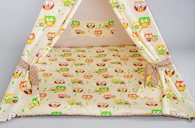 Компактний, затишний, яскравий — вігвам «Бежева совонька» створить особливу loung-зону в дитячій кімнаті. Виріб «вигадає» для малюка безліч різноманітних сюжетних ігор, дасть можливість сховатися в потайному місці з улюбленими іграшками, книжкою в руках. Інтернет-магазин Vigvam представляє якісну оригінальну продукцію від виробника. Доступна ціна та стильний принт — це ще не всі переваги моделі.