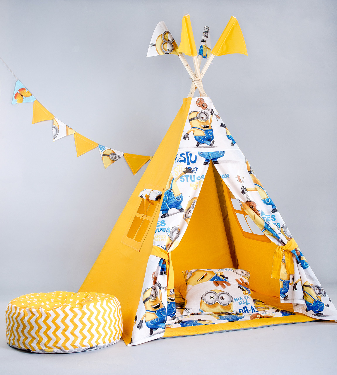 Компактний, затишний, яскравий — вігвам «Міньйон» створить особливу loung-зону в дитячій кімнаті. Виріб «вигадає» для малюка безліч різноманітних сюжетних ігор, дасть можливість сховатися в потайному місці з улюбленими іграшками, книжкою в руках. Інтернет-магазин Vigvam представляє якісну оригінальну продукцію від виробника. Доступна ціна та стильний принт — це ще не всі переваги моделі.